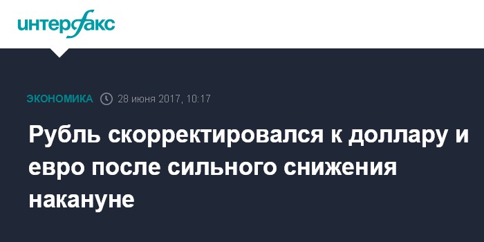 Москва. 28 июня. INTERFAX.RU - Доллар США и евро снижаются при открытии торгов на Московской бирже в среду; рубль повышается к бивалютной корзине, корректируясь после сильного снижения накануне.