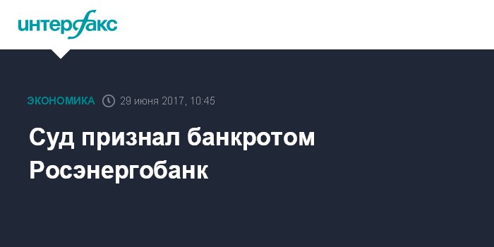 Москва. 29 июня. INTERFAX.RU - Арбитражный суд Москвы в четверг по заявлению ЦБ РФ признал банкротом московский Росэнергобанк, передал корреспондент "Интерфакса" из суда. Суд утвердил конкурсным управляющим Агентство по страхованию вкладов (АСВ).