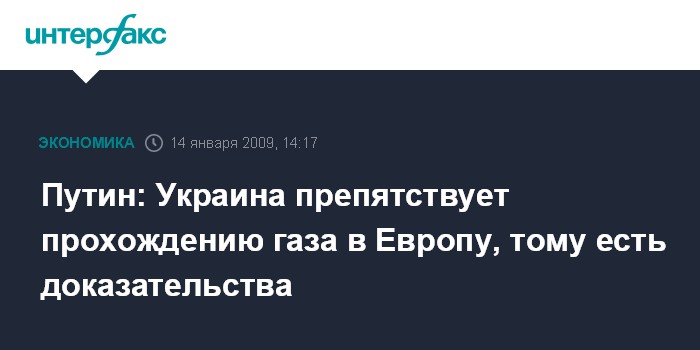 Москва. 14 января. INTERFAX.RU - Премьер-министр РФ Владимир Путин на встрече с премьерами Словакии, Болгарии и Молдавии продемонстрировал своим коллегам документ, подтверждающий, что Украина препятствует прохождению российского газа на территорию Европы.
