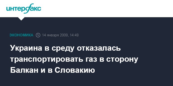Москва. 14 января. INTERFAX.RU - Украина в среду опять отказалась транспортировать российский газ в сторону Балкан и в Словакию, заявил премьер-министр России Владимир Путин на встрече с премьер-министрами Болгарии, Словакии и Молдавии в среду в Москве.
