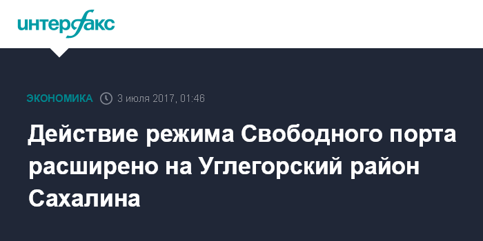Действие режима Свободного порта расширено на Углегорский район Сахалина