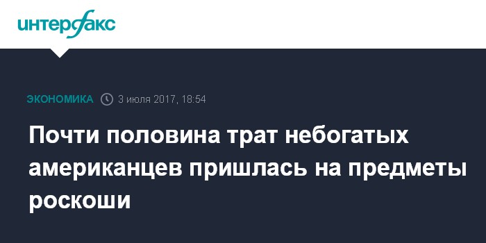 Москва. 3 июля. INTERFAX.RU - Американские потребители любят покупать предметы роскоши и тратят на них значительную часть своих средств, причем это утверждение справедливо даже для семей с низким уровнем дохода, говорится в исследовании, проведенном Deutsche Bank Research.