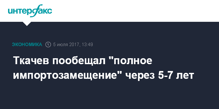 Ткачев пообещал "полное импортозамещение" через 5-7 лет