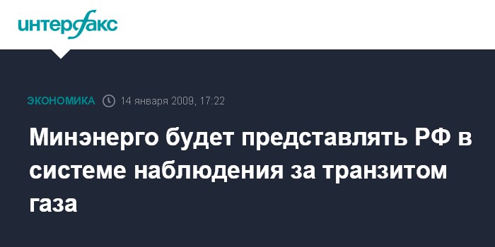Москва. 14 января. INTERFAX.RU - Компетентным органом от Российской Федерации для обобщения данных наблюдателей и мониторинга транзита природного газа через Украину определено министерство энергетики РФ, говорится в пресс-релизе ведомства.