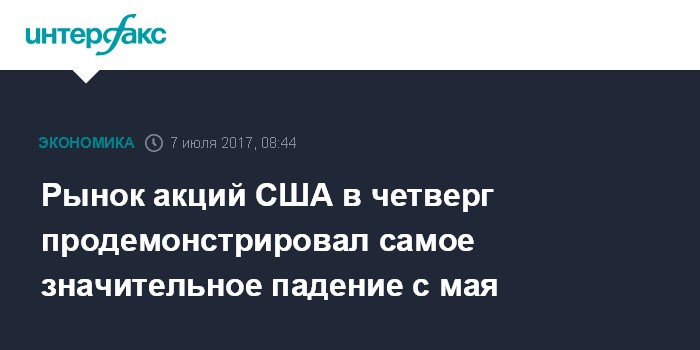Рынок акций США в четверг продемонстрировал самое значительное падение с мая