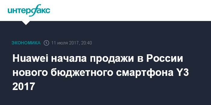 Москва. 11 июля. INTERFAX.RU - Китайская Huawei Techologies Co. начала продажи нового смартфона Y3 2017 в России, сообщается в пресс-релизе компании.