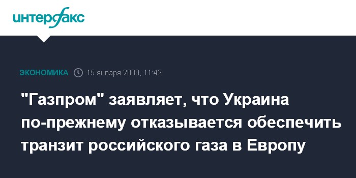 "В ответ был снова получен отказ в осуществлении транзита под предлогом отсутствия технического соглашения об условиях сдачи-приемки газа на приграничных ГИС в 2009 году. Хотя отсутствие в настоящее время технического соглашения при наличии действующего с 2003 по 2013 годы контракта на транзит, не является основанием для прекращения транзита по территории Украины", - заявляет "Газпром".