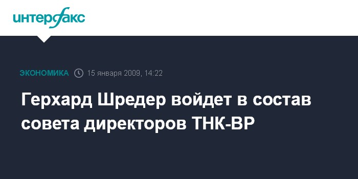 Одним из них станет бывший канцлер Германии Герхард Шредер. Также независимыми участниками совета директоров российско-британской ТНК-BP станут Джеймс Ленг, недавно назначенный на пост председателя совета директоров горнодобывающей компании Rio Tinto, и президент Российского союза промышленников и предпринимателей (РСПП) Александр Шохин.