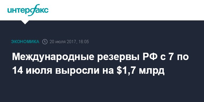 Международные резервы РФ с 7 по 14 июля выросли на $1,7 млрд