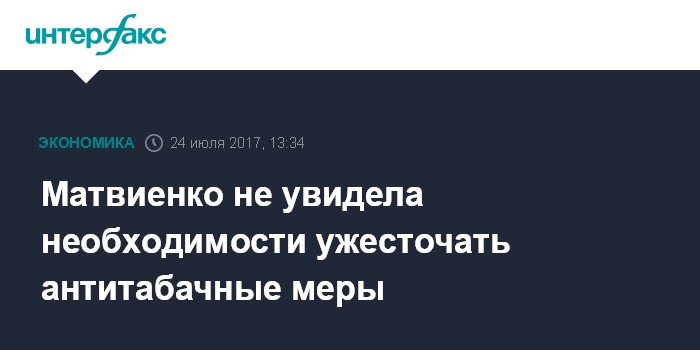 "Я считаю, что избыточное регулирование дополнительное в этой сфере не нужно. И тем более с федерального уровня. На федеральном уровне пока по этому закону надо остановиться, и больше инициатив никаких не предлагать", - сказала Матвиенко на пресс-конференции по итогам весенней сессии 2017 года. По ее словам, в России принят достаточно жесткий антитабачный закон, который снизил количество курильщиков на 17%.