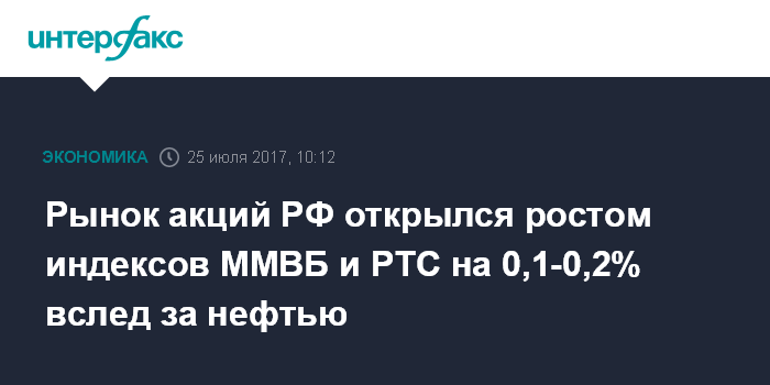 Рынок акций РФ открылся ростом индексов ММВБ и РТС на 0,1-0,2% вслед за нефтью
