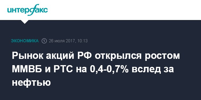 Москва. 26 июля. INTERFAX.RU - Рынок акций РФ открылся в среду ростом цен blue chips на фоне подъема мировых площадок и раллирующей нефти на данных о сокращении ее запасов в США, индексы ММВБ и РТС за минуту торгов прибавили 0,4-0,7%, проигнорировав риски введения Америкой антироссийских санкций.