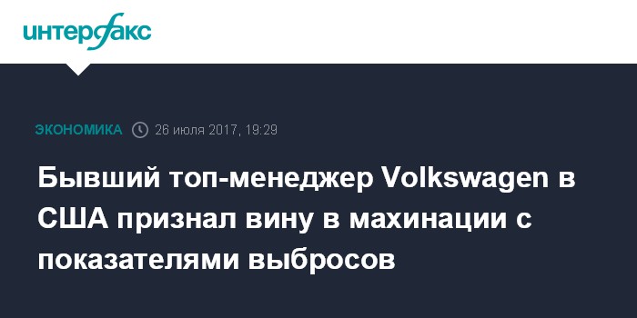 Москва. 26 июля. INTERFAX.RU - Бывший топ-менеджер германского автоконцерна Volkswagen AG Оливер Шмидт согласился признать вину во вменяемых ему преступлениях, связанных с занижением показателей выброса вредных газов в автомобилях с дизельными двигателями, пишет The Wall Street Journal