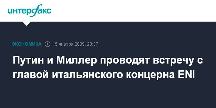 Ново-Огарево. 15 января. INTERFAX.RU - Председатель правительства РФ Владимир Путин встретился в четверг вечером с главой "Газпрома" Алексеем Миллером и главным исполнительным директором итальянского концерна ENI Паоло Скарони. Встреча проходит в резиденции председателя правительства России в Ново-Огарево.