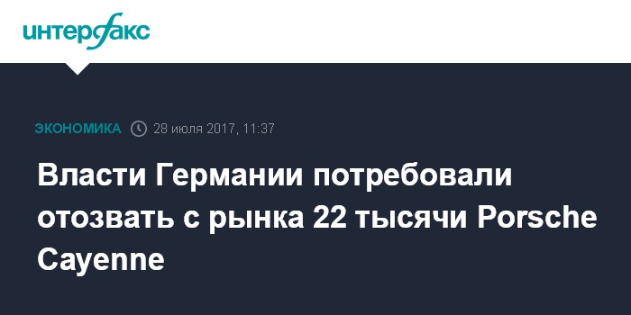 Москва. 28 июля. INTERFAX.RU - Министерство транспорта Германии потребовало от компании Porsche отзыва с европейского рынка и прекращения продажи 22 тысяч автомобилей с дизельными двигателями, на которых установлены незаконные устройства, занижающие показатели вредных выбросов.