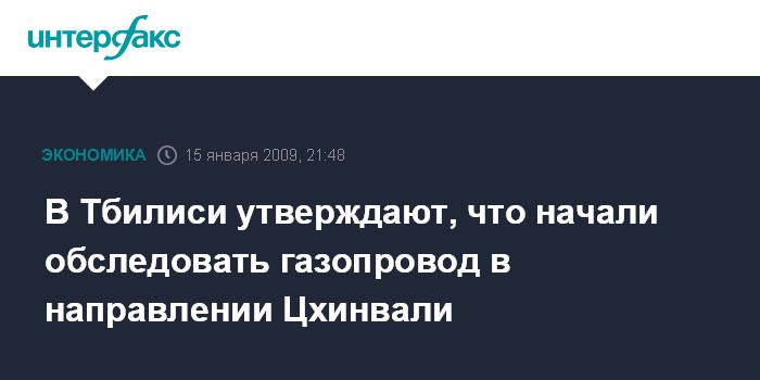 Тбилиси. 15 января. INTERFAX.RU - Грузия приступила к мониторингу по всей длине газопровода Агара - Цхинвали с целью выявления поврежденных участков и проведения их незамедлительного ремонта, говорится в специальном заявлении грузинского МИД в четверг.