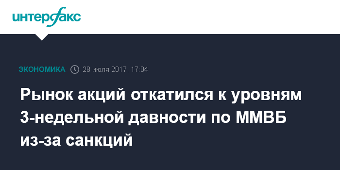 Рынок акций откатился к уровням 3-недельной давности по ММВБ из-за санкций