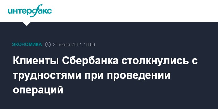 Москва. 31 июля. INTERFAX.RU - Клиенты Сбербанка России испытывали временные трудности в проведении операций, сейчас работа систем полностью восстановлена, сообщили "Интерфаксу" в понедельник в пресс-службе кредитной организации.