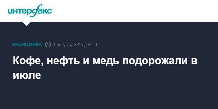 Кофе подорожал в июле почти на 11%, что стало наилучшим месячным подъемом за последний год. Сейчас его цены находятся на максимальной отметке за три месяца.