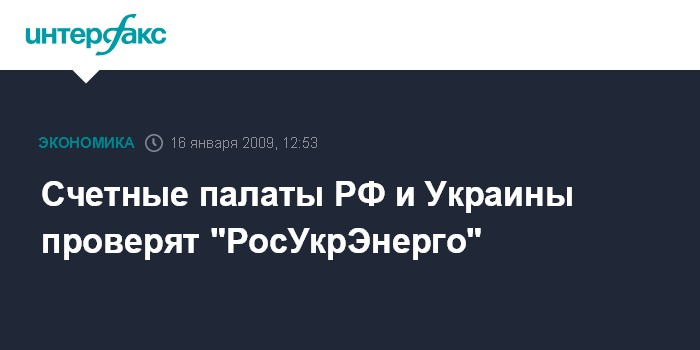 Москва. 16 января. INTERFAX.RU - Коллегия Счетной палаты РФ в пятницу приняла решение о включении в план работы на 2009 год проверки выполнения совместным предприятием "Компания "РосУкрЭнерго" (RosUkrEnergo AG) обязательств по заключенным внешнеэкономическим контрактам на поставку ОАО "Газпром" природного газа на Украину и его транспортировку через территорию Украины европейским потребителям, сообщается в пресс-релизе Счетной палаты.