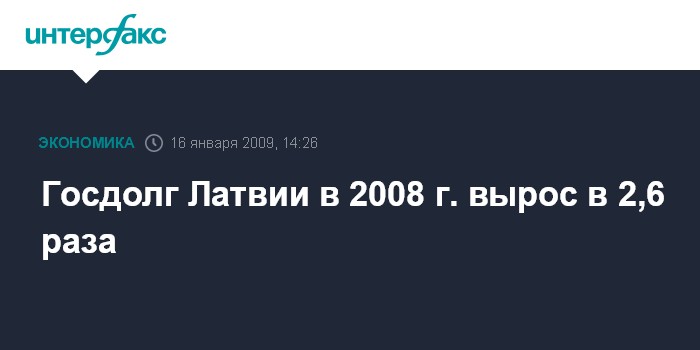 Госдолг Латвии в 2008 г. вырос в 2,6 раза
