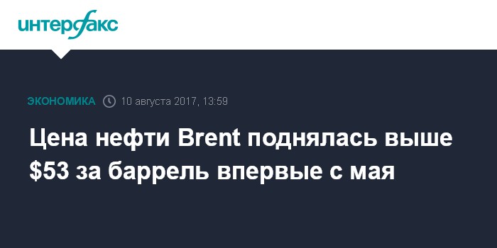 Цена нефти Brent поднялась выше $53 за баррель впервые с мая