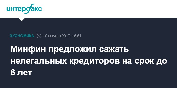Москва. 10 августа. INTERFAX.RU - Нелегальным кредиторам может грозить лишение свободы на срок до шести лет с лишением права занимать определенные должности или заниматься определенной деятельностью на срок до трех лет. Такая максимальная мера наказания за незаконную выдачу потребительских займов предусмотрена законопроектом, опубликованном на сайте regulation.gov.ru. Проект закона о внесении изменений в Уголовный кодекс разработан Минфином.