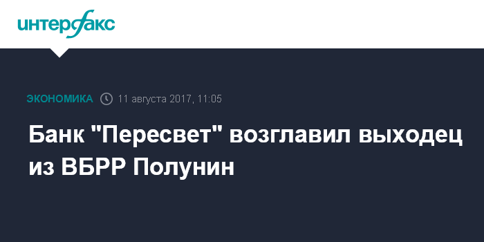 Банк "Пересвет" возглавил выходец из ВБРР Полунин