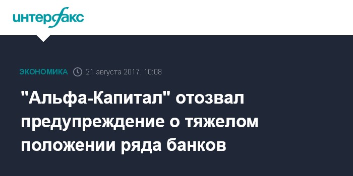 "Альфа-Капитал" отозвал предупреждение о тяжелом положении ряда банков