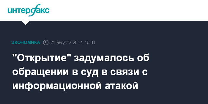 "Открытие" задумалось об обращении в суд в связи с информационной атакой