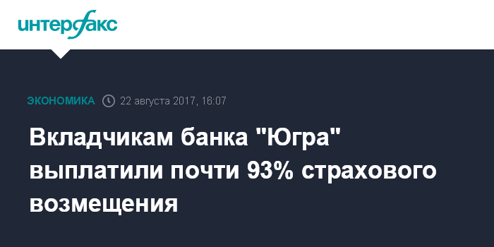 Вкладчикам банка "Югра" выплатили почти 93% страхового возмещения