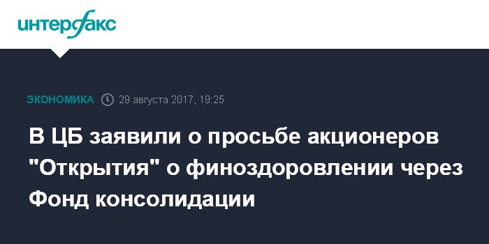 В ЦБ заявили о просьбе акционеров "Открытия" о финоздоровлении через Фонд консолидации