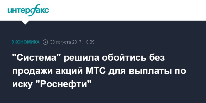 "Система" решила обойтись без продажи акций МТС для выплаты по иску "Роснефти"
