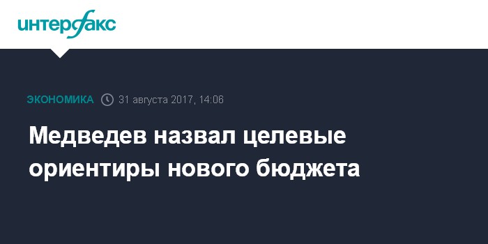 Москва. 31 августа. INTERFAX.RU - Целевыми ориентирами нового бюджета должны быть сохранение инфляции на уровне в 4% и снижение бюджетного дефицита, заявил премьер-министр Дмитрий Медведев.