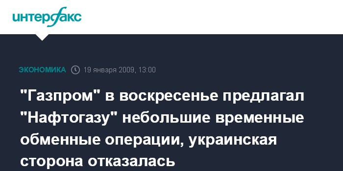 "Газпром" в воскресенье предлагал "Нафтогазу" небольшие временные обменные операции, украинская сторона отказалась