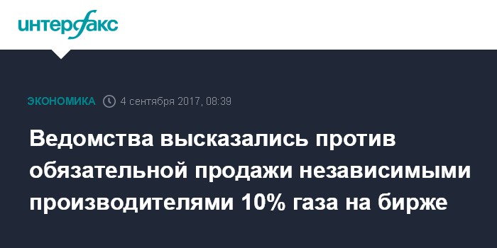 Ведомства высказались против обязательной продажи независимыми производителями 10% газа на бирже