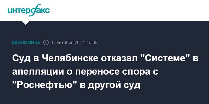 Суд в Челябинске отказал "Системе" в апелляции о переносе спора с "Роснефтью" в другой суд