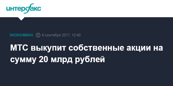 МТС выкупит собственные акции на сумму 20 млрд рублей