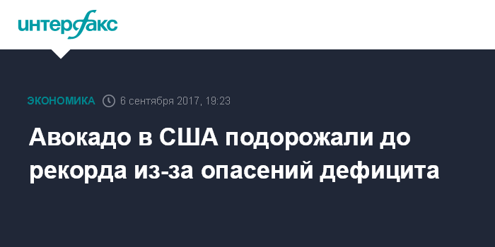 Москва. 6 сентября. INTERFAX.RU - Цены на авокадо в США подскочили до рекордных отметок из-за низкого урожая в Калифорнии и проблем с поставками из Мексики и других стран, сообщает Dow Jones.