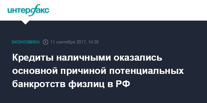 Кредиты наличными оказались основной причиной потенциальных банкротств физлиц в РФ