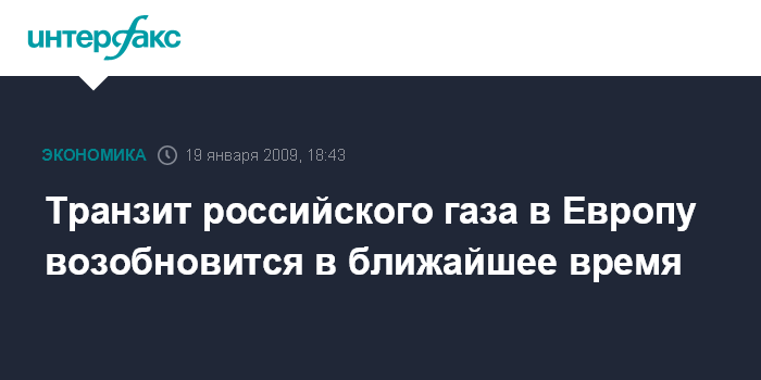 Москва. 19 января. INTERFAX.RU - "Газпром" (РТС: GAZP) получил указание возобновить транзит по всем направлениям и в полном объеме, сообщил премьер-министр РФ Владимир Путин по итогам подписания документов о поставках и транзите газа. Он выразил надежду, что транзит российского газа в Европу возобновится в ближайшее время.