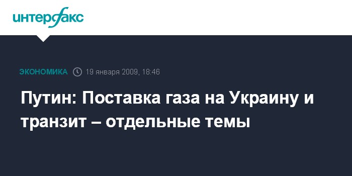 Москва. 19 января. INTERFAX.RU - Премьер-министр России Владимир Путин отмечает, что вопросы транзита газа через Украину и вопросы поставок российского газа ей самой - это не взаимосвязанные темы.
