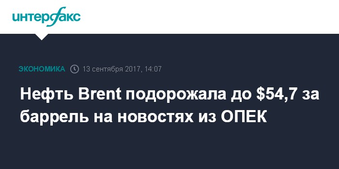 Нефть Brent подорожала до $54,7 за баррель на новостях из ОПЕК