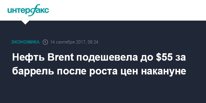Нефть Brent подешевела до $55 за баррель после роста цен накануне