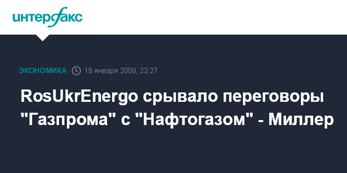 Москва. 19 января. ИНТЕРФАКС-АГИ - Трейдер RosUkrEnergo срывал переговоры "Газпрома" с "Нафтогазом Украины", заявил председатель правления "Газпрома" Алексей Миллер корреспонденту "Интерфакса" в офисе российского концерна.