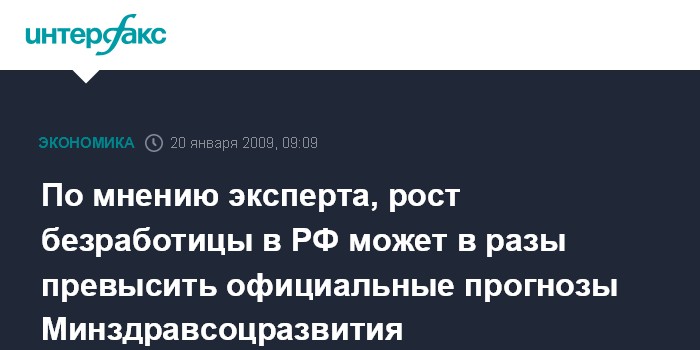 По мнению эксперта, рост безработицы в РФ может в разы превысить официальные прогнозы Минздравсоцразвития