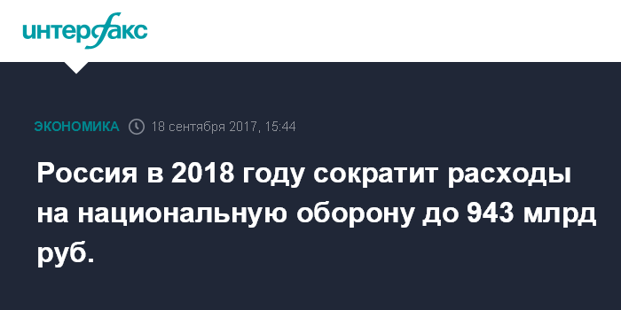 Россия в 2018 году сократит расходы на национальную оборону до 943 млрд руб.