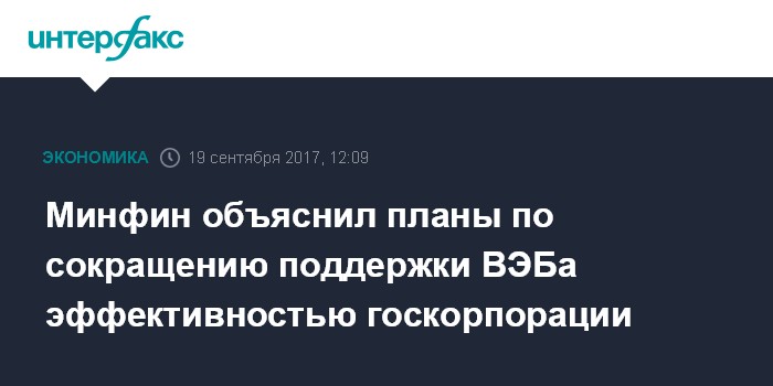 Москва. 19 сентября. INTERFAX.RU - Глава Минфина Антон Силуанов в заочном споре с ВЭБом о размере поддержки на предстоящую трехлетку применил новый аргумент: госкорпорация стала работать эффективнее, и столько бюджетных денег ей уже не нужно.