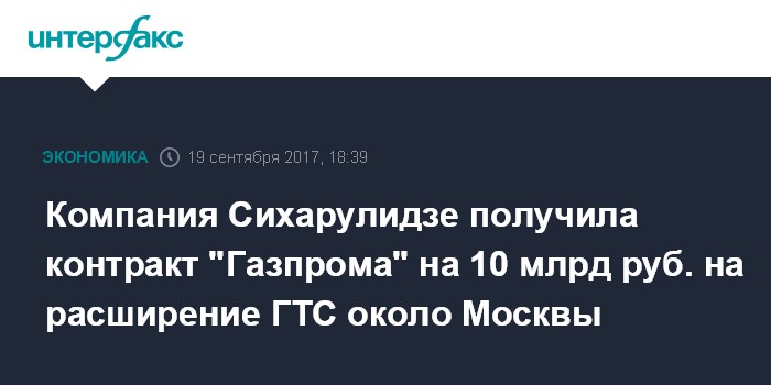 Компания Сихарулидзе получила контракт "Газпрома" на 10 млрд руб. на расширение ГТС около Москвы