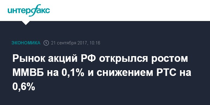 Москва. 21 сентября. INTERFAX.RU - Рынок акций РФ открылся в четверг разнополярной динамикой рублевых цен blue chips из-за ослабления рубля на фоне роста доллара на Forex после заседания Федрезерва США, индексы ММВБ и РТС за минуту торгов изменились на 0,1-0,6%.